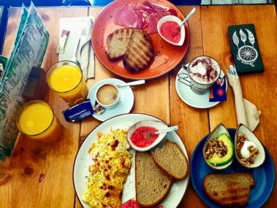 Dans leur menu, vous trouverez une grande variété de plats sucrés et salés qui raviront vos petits déjeuners. Jus et smoothies frais du jour, des bols de fruits colorés avec du yaourt et du muesli, des crêpes sucrées et salées, des toasts à l’huile d’Olive, à l’avocat ou au fromage frais et à la tomate. Il y a en pour tous les goûts ! Pour plus de gourmandise, essayez leur petit déjeuner typique avec du pain fait maison et des friandises, ou sinon leur assiette d’œufs et bacon (ou au saumon) pour une bouffée d’énergie.